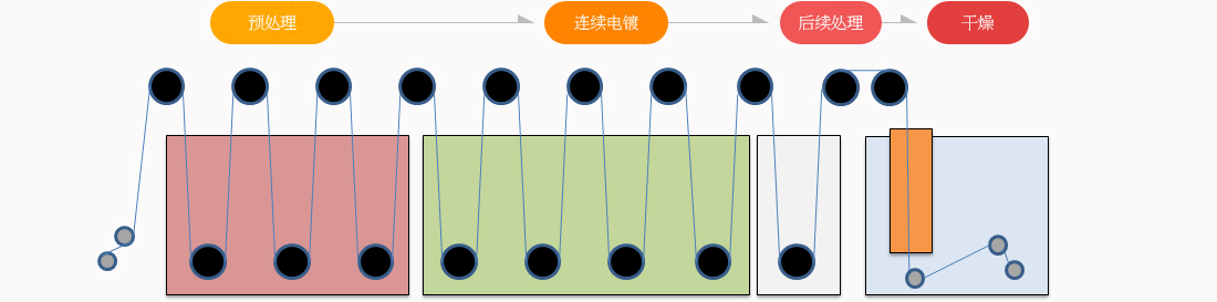 | 電鍍線 | 卷對卷(Roll to Roll)連續(xù)電鍍生產(chǎn)線 | 材料厚度 | 可電鍍20?以下的超薄金屬箔 |